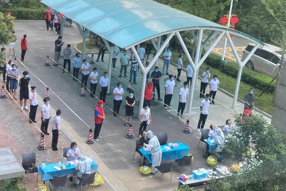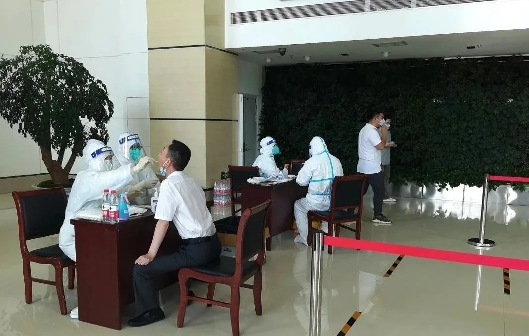 疫情當前,刻不容緩,全員核酸檢測現(xiàn)場,為避免人員聚集,消除安全隱患,提前設置1米線,進行場地消殺,并安排多名人員現(xiàn)場維持秩序。醫(yī)護人員不畏艱難沖在一線,黃錦人積極配合,確保檢測工作安全、順利、有序的進行,大家團結一心,共同戰(zhàn)疫!