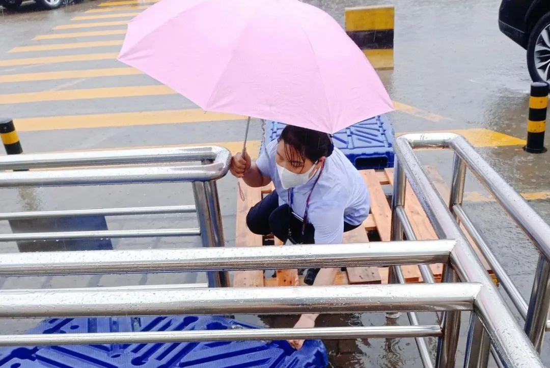 機(jī)場(chǎng)貨運(yùn)站作為航空貨運(yùn)最重要的場(chǎng)所,防汛工作是重中之重。暴雨來臨時(shí),吳瑞紅、馬小會(huì)帶領(lǐng)項(xiàng)目人員冒雨進(jìn)行細(xì)致排查,對(duì)容易出現(xiàn)積水、倒灌的“關(guān)鍵點(diǎn)”進(jìn)行疏通清理,確保排水暢通,筑牢安全防線。各部門團(tuán)結(jié)一心,相互配合,眾志成城,抗洪救災(zāi)!