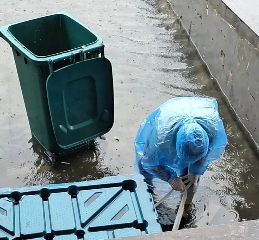 秩管人員加強(qiáng)巡邏頻次,及時(shí)安裝水泵抽取積水,24小時(shí)待命應(yīng)對(duì)突發(fā)情況;維修人員冒雨檢修設(shè)備,堵住漏水管道,將電梯停在頂層,將損失降到最低;保潔人員有序清理積水,一桶一桶的往外清水……他們的身影出現(xiàn)在各易澇點(diǎn),或是清理排水口雜物,或是用沙袋筑起防線,或是來回巡視雨情……在狂風(fēng)驟雨的深夜,他們徹夜堅(jiān)守在第一線,用實(shí)際行動(dòng)為大家保駕護(hù)航。
