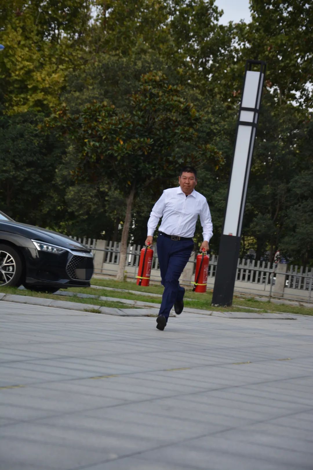 “情景模擬”環(huán)節(jié),隊員對不同類型的外來人員來訪接待、電梯困人等突發(fā)事件及時發(fā)現(xiàn)、上報,對受困人員進行安撫,積極配合救援工作。